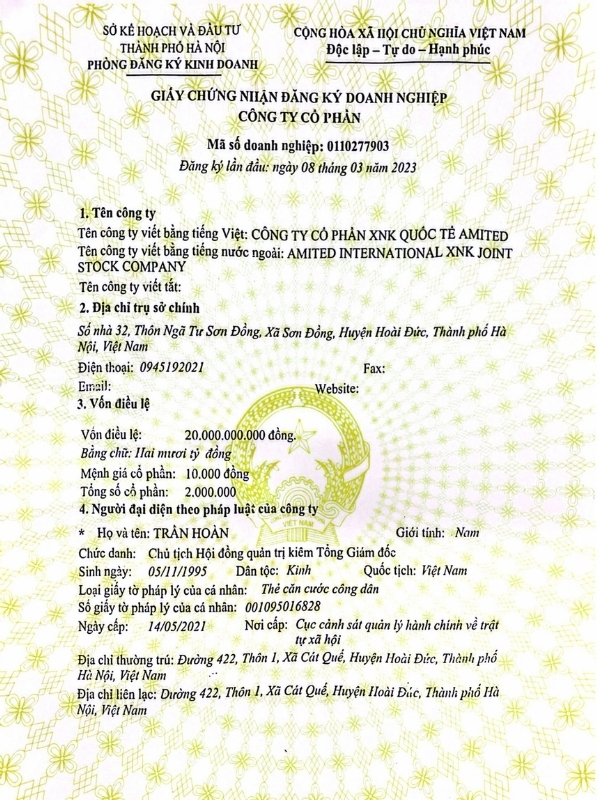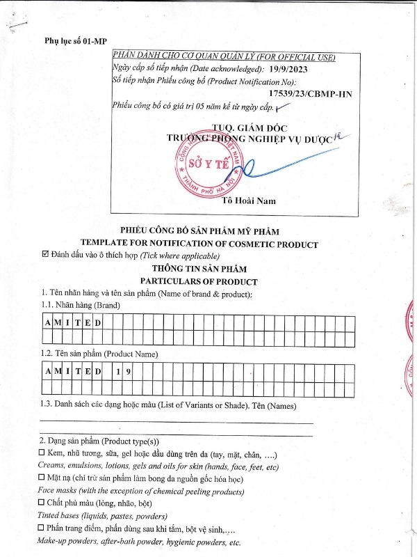 AMITED cam kết đầy đủ giấy tờ công bố, kiểm định TSL, bảo vệ tuyệt đối quyền lợi kinh doanh.